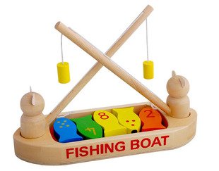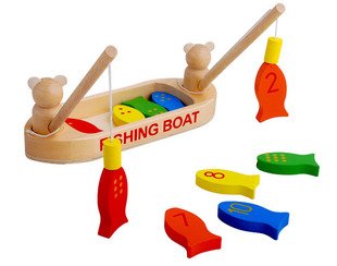 ナチュラルな木製のかわいいボート型さかなつりゲームです。