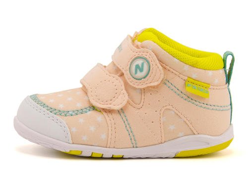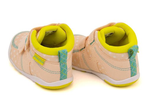 2本ストラップでフィット感をアップさせ、4LOVE機能を搭載したハイカットモデル☆ 履き口が大きく開くので脱ぎ履きがラクラクです♪ 星柄プリントを全体に配した可愛らしい一足♪ インソールは吸汗・速乾性に優れ、敏感なお子さまの足を優しく清潔に保ちます。柔らかく肌触りの良いメッシュアッパーや、優れた屈曲性と安定性をもつアウトソールで歩き始めのベビーをサポートします。ベビーの成長を妨げないキッズ専用ラストを採用。凸凹デザインが特徴のプチタッチインソールで足裏を刺激し、成長を促します。中敷きは取り外し可能なので、いつも清潔に保てます。※展開サイズ:キッズ
