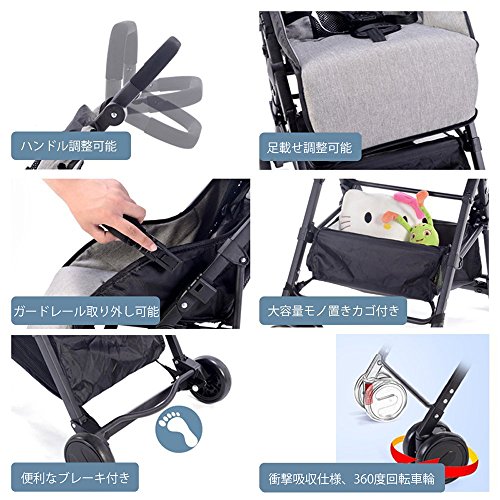 - 片手開閉可能:お子様を抱えながらもワンタッチに折り畳みできます!;超軽量化デザイン:片手でも持ち運びラクラク、アルミ材を利用して僅か4.1KGを実現!;機能性抜群:背もたれリクライニング機能付き、足載せ調節可能、大容量物置カゴ、震動吸収タイヤ構造など全部入り!