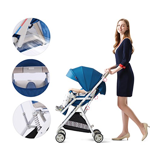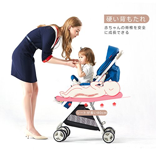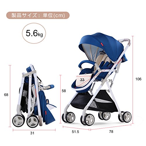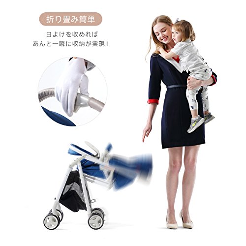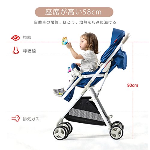 (newjp) ベビーカー セカンドベビーカー バギー ワンタッチ片手開閉タイプ 機内持ち込み可 リクライニング機能搭載 三色選択可 (ブルー)