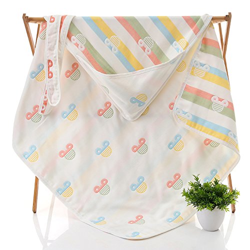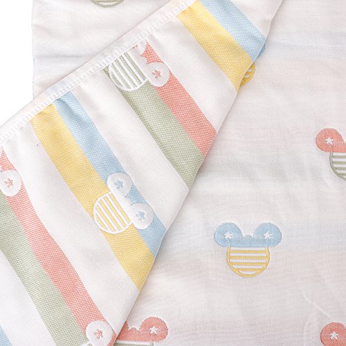 (newjp)綿100%6重ガーゼおくるみ ベビーバスタオル バスローブ アフガンにも 通気性抜群90×90 (カラフルミッキ )