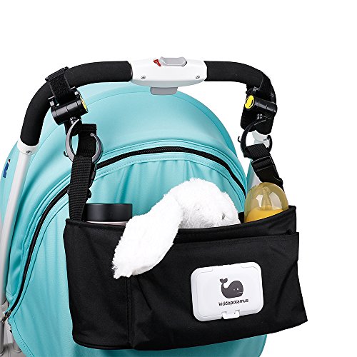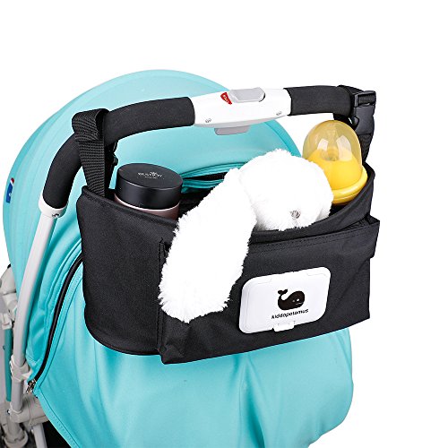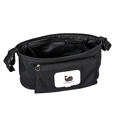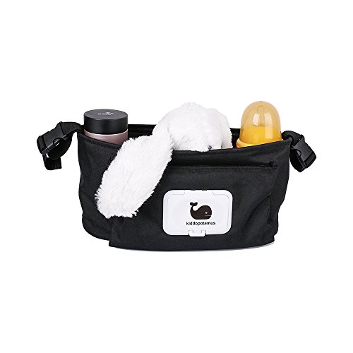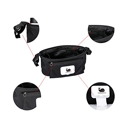 (newjp)ベビーカー用バッグ ドリンク ホルダー機能 ティッシュポーチ付き 多機能小物入れ 同梱にフック2個セット付き (黒色)