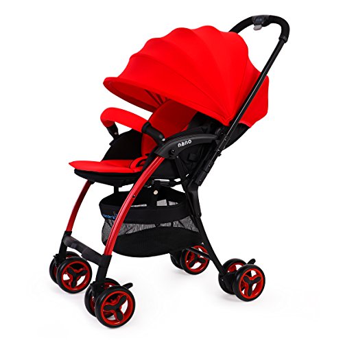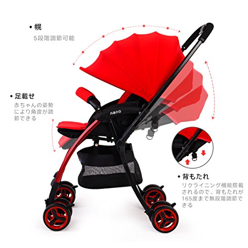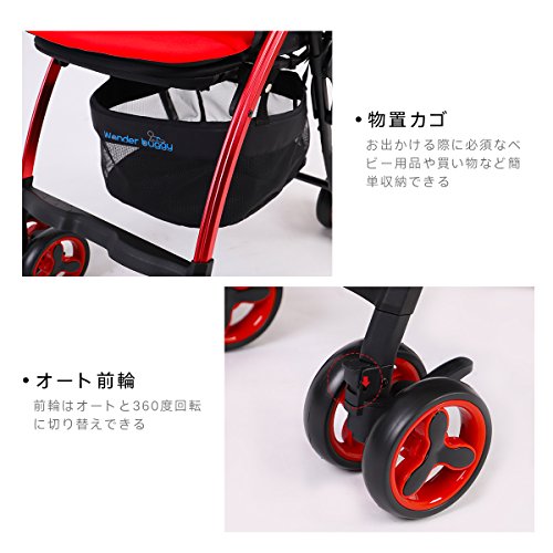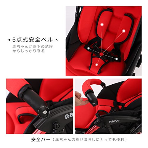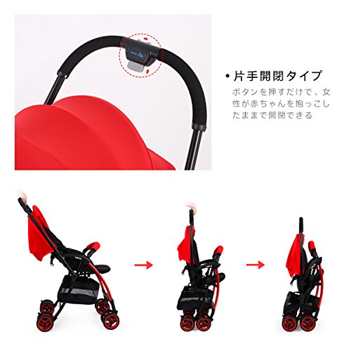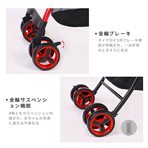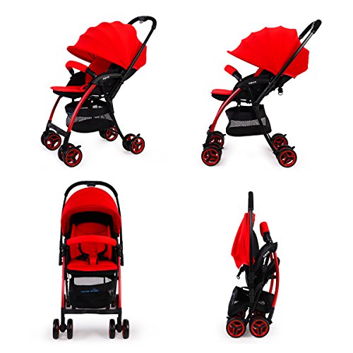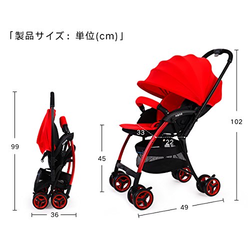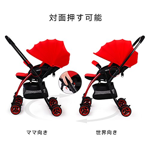 ( Newox) 両対面ベビーカー ベビーカー 片手開閉タイプ ダブルホイール リクライニング機能 (レッド)