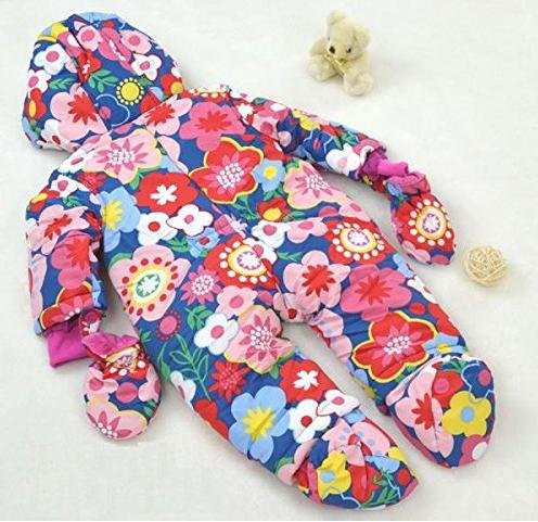 ネクシード(nexeed) ベビー キッズ 防寒 手袋 ソックス 付き デザイン 中綿 カバーオール 男の子 女の子 6か月~24ヵ月 (18か月, フラワー)
