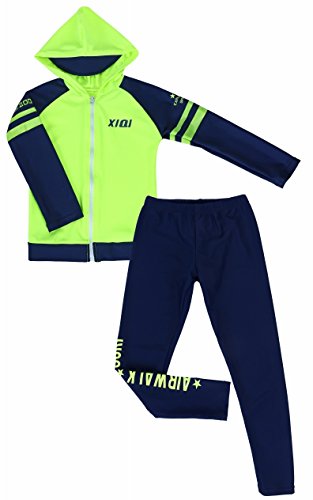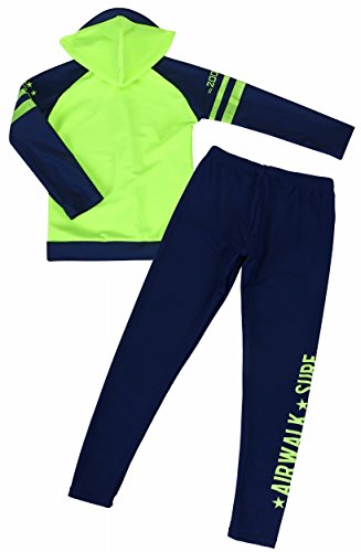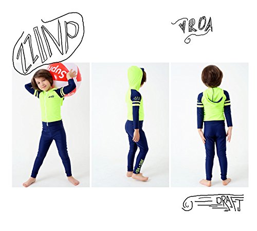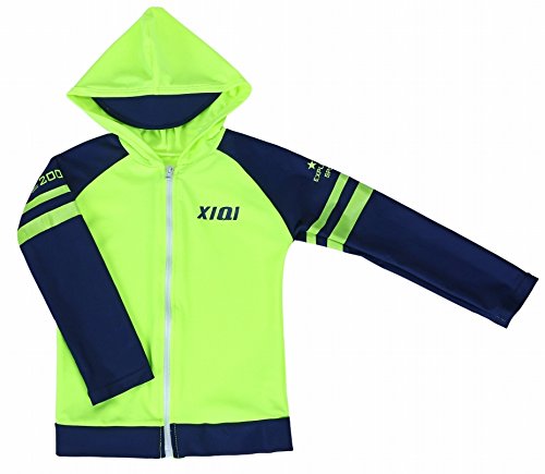 next.design UPF50+ 子供用 ラッシュガード 水着 スイムウェア 上下セット パーカー フロントファスナー 長袖 長ズボン (M(95-105cm), イエローグリーン)