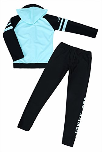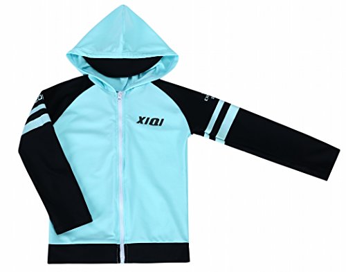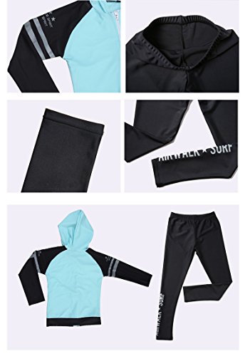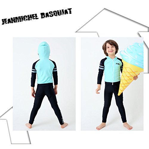 next.design UPF50+ 子供用 ラッシュガード 水着 スイムウェア 上下セット パーカー フロントファスナー 長袖 長ズボン (L(105-115cm), ミントブルー)