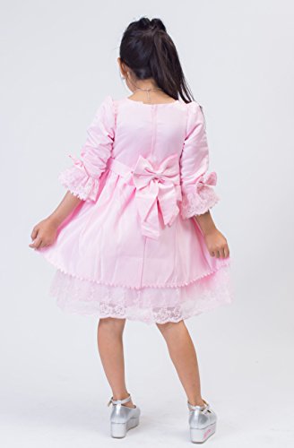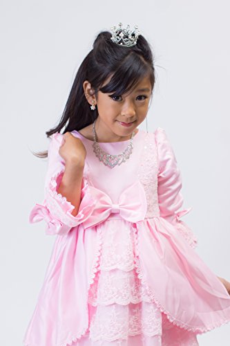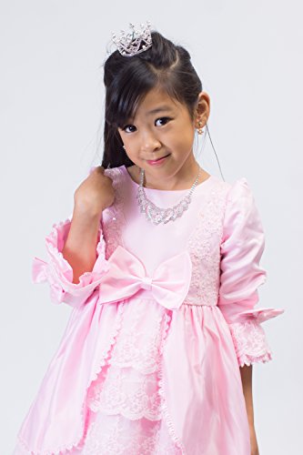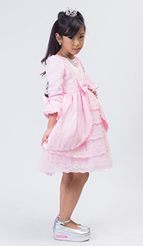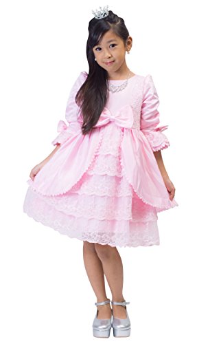 【next.design】 キッズ プリンセスドレス ふんわりパニエ内臓 フリル ビジュー レース ワンピース ハロウィン クリスマス 結婚式 入学式 フォーマル (130cm, ピンク)