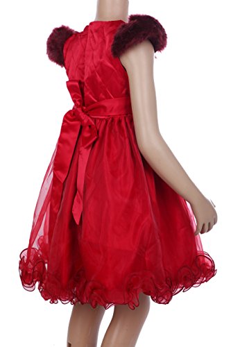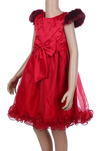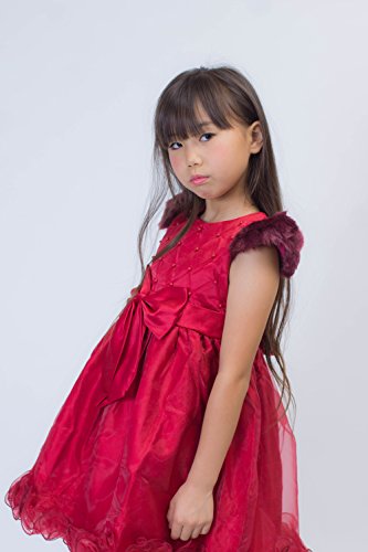 【next.design】 肩ファー付き キッズドレス ワンピース フリル ふんわりパニエ内臓 ハロウィン クリスマス 結婚式 入園式 ピアノ発表会 (130cm)