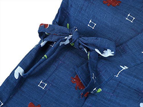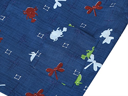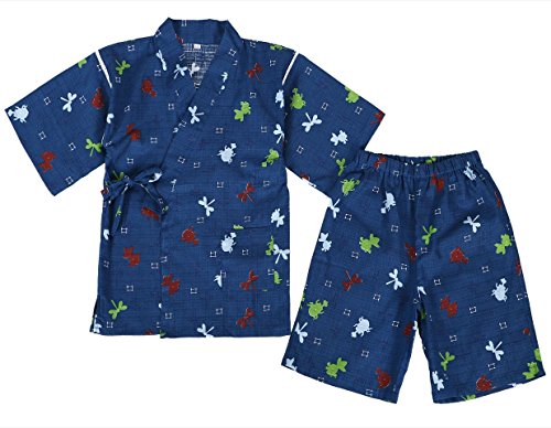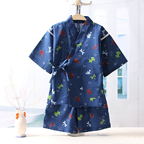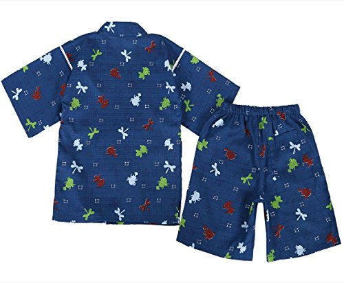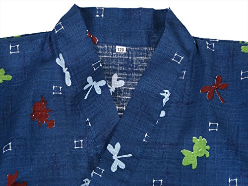 next.design キッズ 甚平 上下セット 綿100% かぶとむし とんぼデザイン (120cm, ネイビー)