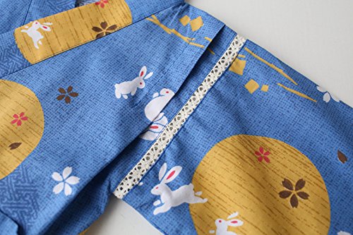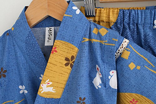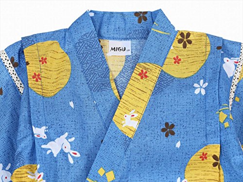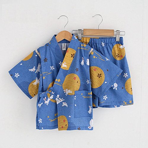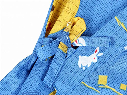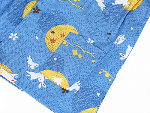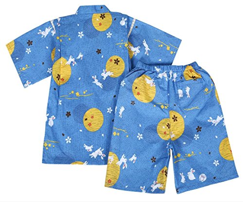 next.design キッズ 甚平 上下セット 綿100% 十五夜デザイン うさぎ (120cm, ブルー)