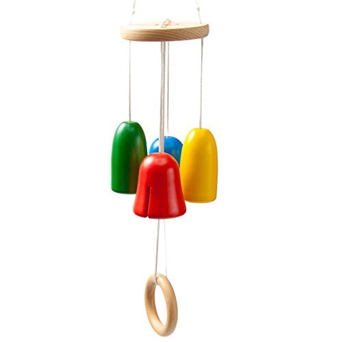 - カラフルなベル型の木製モビールです。寝ている赤ちゃんの上にぶら下げて下さい。