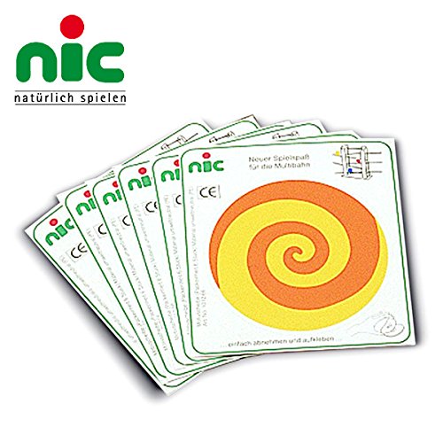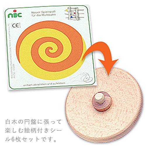 ドイツ・nic(ニック社)の木製スロープトイ「ニックスロープ」用の追加パーツ。 白木の円盤に張って楽しむ絵柄付きシール6枚セットです。 横幅67cm× 高さ45cmと大迫力のスロープ遊びが楽しめる「ニックスロープ」。 人形や玉や円盤などモチーフによって、下るスピードも異なりますので、お子さまも飽きずに集中して遊ぶことができます。 緩やかなスロープを下るモチーフの動きは、小さなお子さまでもしっかりと目で追うことができます。 保育施設やショールームなどの2・3歳ぐらいの子ども達が集まる遊び場にオススメのおもちゃです。