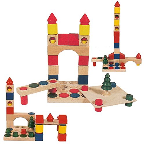 ドイツ・nic(ニック社)のジョイント式積み木「CUBIO クビオ/キュビオ」シリーズ。 はじめてのCUBIOにオススメの積み木44ピースセットです。 「CUBIO クビオ 基本セット ハーフ」は、ペグさし遊びができる14.4cmのボードや、積み上げた時に窓のように見える穴あき積み木、木や円錐パーツなどが、バランスよく入っています。 ■CUBIO(クビオ/キュビオ)とは CUBIO(クビオ/キュビオ)は、ドイツのデザイナー、ハートマン氏が考案したジョイント式の積み木です。 独自のジョイントシステムで組み上げた造形物は、簡単に崩れないようになっています。 ジョイントを工夫すれば、アーチ状に組み上げたり、通常の積み木ではできない形も作ることができます。 ジョイントを積み木の穴に差し込む作業は、ペグさし遊びと同じ要領ですので、通常の積み木遊びより、指先の技巧性を高めてくれます。 簡単には崩れない仕組みは、「積み上げられる」や「組み立てられる」という達成感を得られ、ドイツではハンディキャップがある子どもにも広く活用されています。 積み木の基尺は3.6cmです。基本の積み木パーツの他に、人や木などパーツも入っていますので、積み木遊びからごっこ遊びへと遊びを広げることができます。 また、1歳から遊べる組み立てスロープ「CUBIO 玉の塔」とも互換性がありますので、組み合わせて遊ぶことができます。