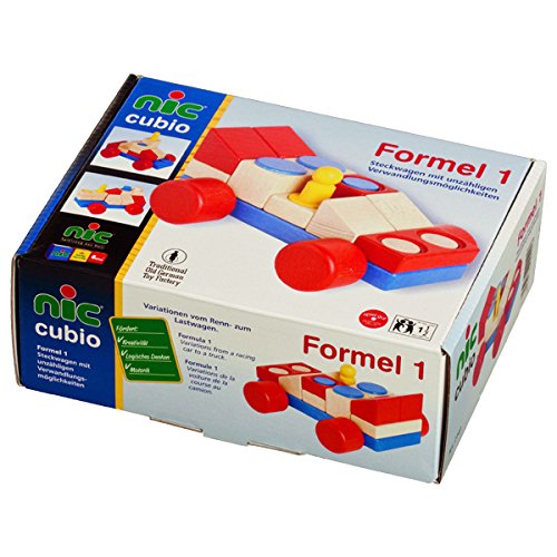 ドイツ・nic(ニック社)のジョイント式積み木「CUBIO クビオ/キュビオ」シリーズ。 オリジナルの車が作れる「CUBIO クビオ フォーメル1」。 「CUBIO クビオ フォーメル1」は、乗り物好きのお子さまにオススメです。 車輪付きの土台と人型の積み木が1つ含まれています。 もう少し積み木が欲しい方は、「CUBIO クビオ Jrパック」が追加パックとしてオススメです。 ■CUBIO(クビオ/キュビオ)とは CUBIO(クビオ/キュビオ)は、ドイツのデザイナー、ハートマン氏が考案したジョイント式の積み木です。 独自のジョイントシステムで組み上げた造形物は、簡単に崩れないようになっています。 ジョイントを工夫すれば、アーチ状に組み上げたり、通常の積み木ではできない形も作ることができます。 ジョイントを積み木の穴に差し込む作業は、ペグさし遊びと同じ要領ですので、通常の積み木遊びより、指先の技巧性を高めてくれます。 簡単には崩れない仕組みは、「積み上げられる」や「組み立てられる」という達成感を得られ、ドイツではハンディキャップがある子どもにも広く活用されています。 積み木の基尺は3.6cmです。基本の積み木パーツの他に、人や木などパーツも入っていますので、積み木遊びからごっこ遊びへと遊びを広げることができます。 また、1歳から遊べる組み立てスロープ「CUBIO 玉の塔」とも互換性がありますので、組み合わせて遊ぶことができます。