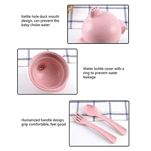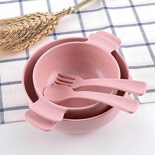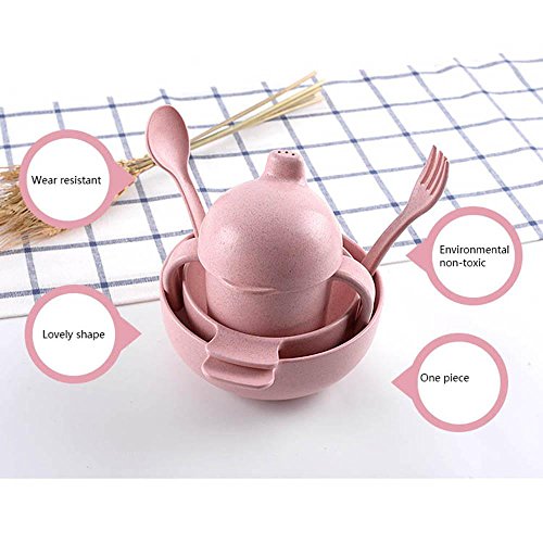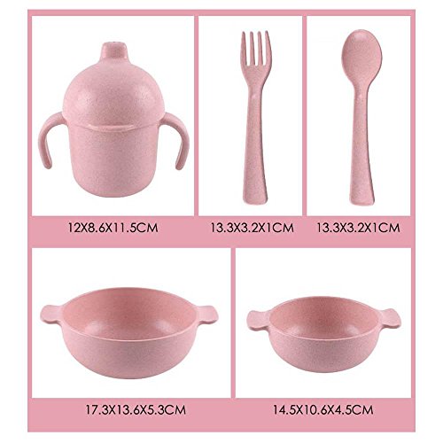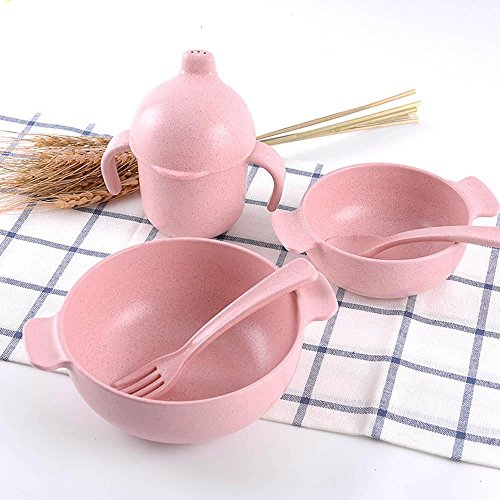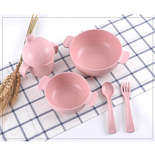 子供の食器類セット、Niceeshop ( TM ) Eco Friendly Healthy Wheat Straw Dinnerware for children toddlers £¬ withフォーク、スプーン、カップ、箸 ピンク 7025779175615