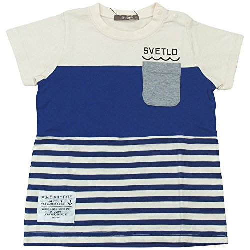 【H28年春夏物】 nico hrat(ニコフラート) 製品洗い加工済み 42/2天竺前身切替ボーダーTシャツ 100cm/BL NO.B-260107