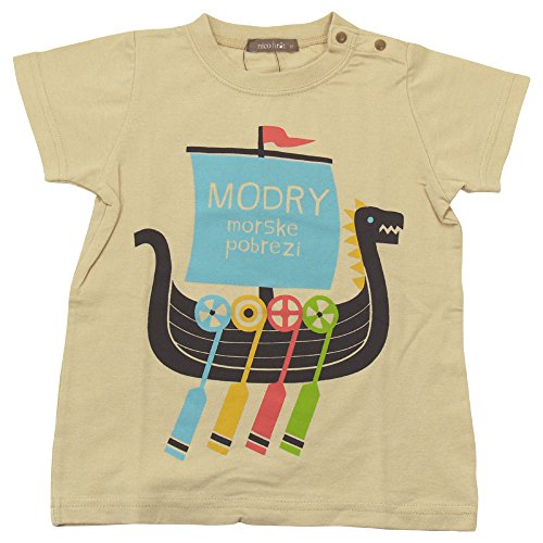 【H28年春夏物】 nico hrat(ニコフラート) 製品洗い加工済み 42/2天竺帆船Tシャツ 90cm/BE NO.B-260103
