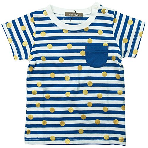 《H28年夏物》 nico hrat(ニコフラート) 製品洗い加工済み 天竺半袖ドットボーダーTシャツ 100cm/BL NO.B-260145