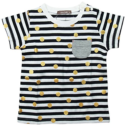《H28年夏物》 nico hrat(ニコフラート) 製品洗い加工済み 天竺半袖ドットボーダーTシャツ 110cm/BK NO.B-260145