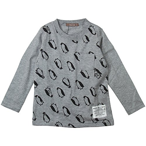 《H28年秋冬物》 nico hrat(ニコフラート) 製品洗い加工済み 42/2天竺ペンギン長袖Tシャツ 110cm/MG B-260267