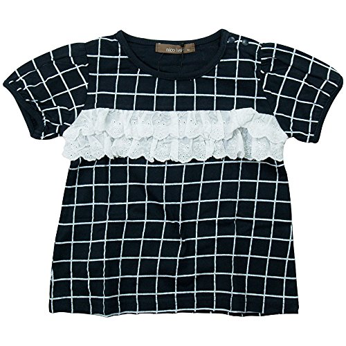 《春夏対応》 nico hrat(ニコフラート) 製品洗い加工済み 42/2天竺チェック半袖Tシャツ 100cm/NV NO.B-270116