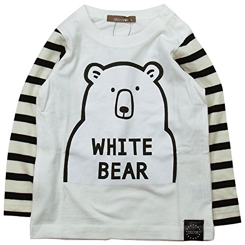 《春夏対応》 nico hrat(ニコフラート) 製品洗い加工済み 42/2天竺しろくまボーダー長袖Tシャツ 130cm /OW NO.B-270203