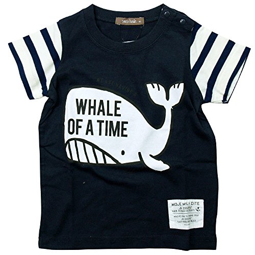 《春夏対応》 nico hrat(ニコフラート) 製品洗い加工済み 42/2天竺半袖くじらTシャツ 120cm /NV NO.B-270105