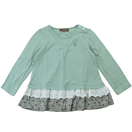 【H28年春物】 nico hrat(ニコフラート) 製品洗い加工済み 綿レーヨン天竺水玉フリル長袖チュニック 100cm/BL NO.B-260803