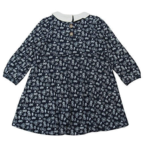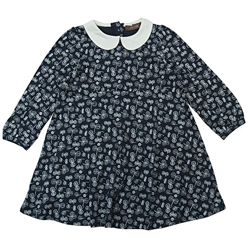 【H28年春物】 nico hrat(ニコフラート) 製品洗い加工済み 綿レーヨン天竺葉っぱ柄長袖ワンピース 110cm/NV NO.B-260802