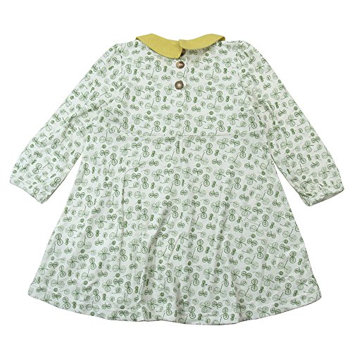 【H28年春物】 nico hrat(ニコフラート) 製品洗い加工済み 綿レーヨン天竺葉っぱ柄長袖ワンピース 100cm/OB NO.B-260802