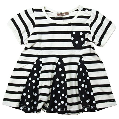 《春夏対応》 nico hrat(ニコフラート) 製品洗い加工済み 42/2天竺半袖水玉ボーダーチュニック 130cm /NV NO.B-270108