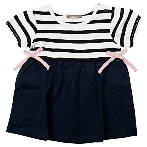 《春夏対応》 nico hrat(ニコフラート) 製品洗い加工済み 42/2天竺半袖ボーダーリボンチュニック 80cm /BK NO.B-270111