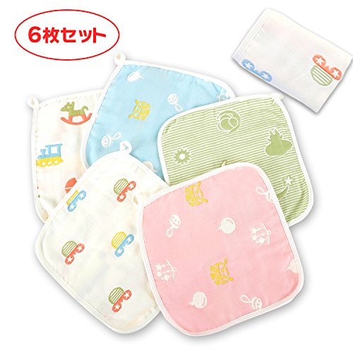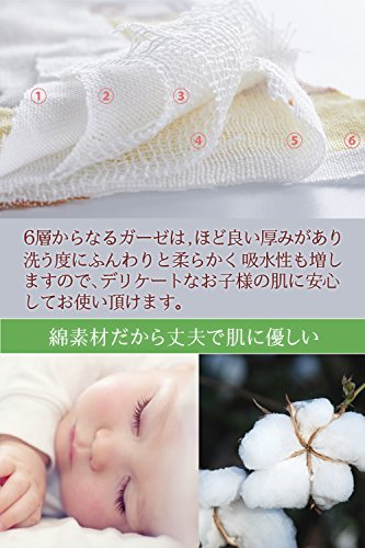 - 6枚組で洗い換えにも便利。6層ガーゼで縫製がしっかりしており洗ってもへたりにくいです。洗濯の度に吸水性も増します。