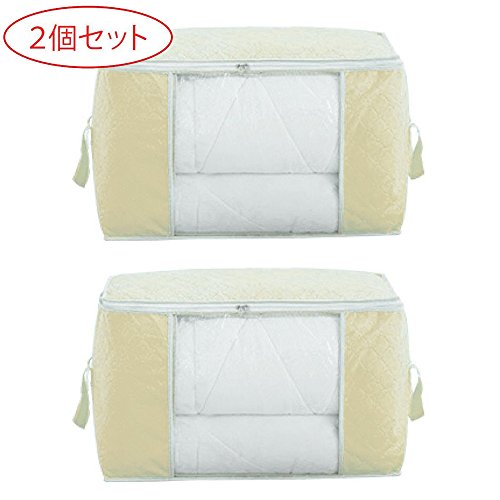 布団 収納ケース 2個セット 羽毛布団 収納袋 大容量 衣替え 持ち手付 60×40×35cm (ベージュ) nicoly