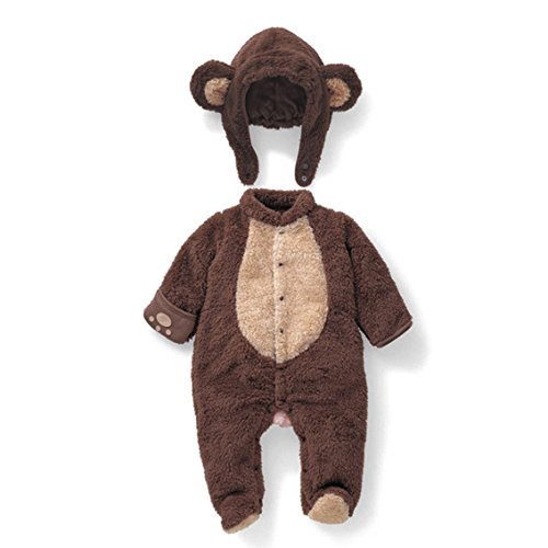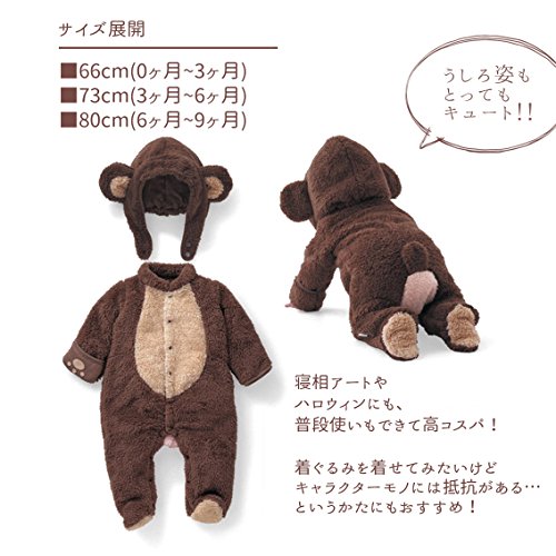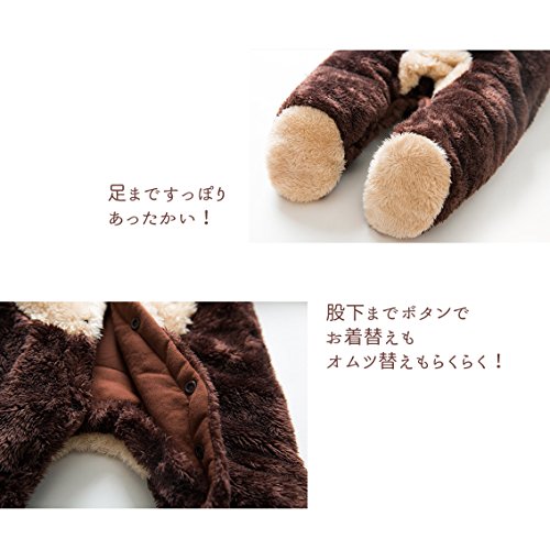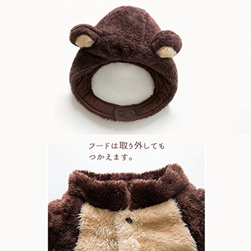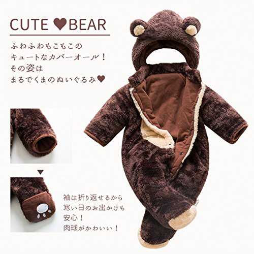 nijuh クマ コスチューム カバーオール ベビー 着ぐるみ ボタン フード ふわふわ もこもこ (80)