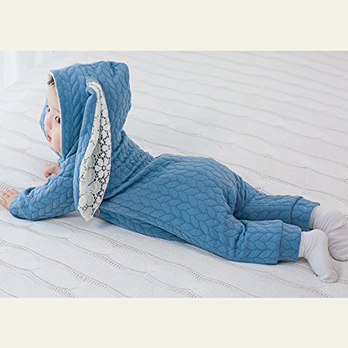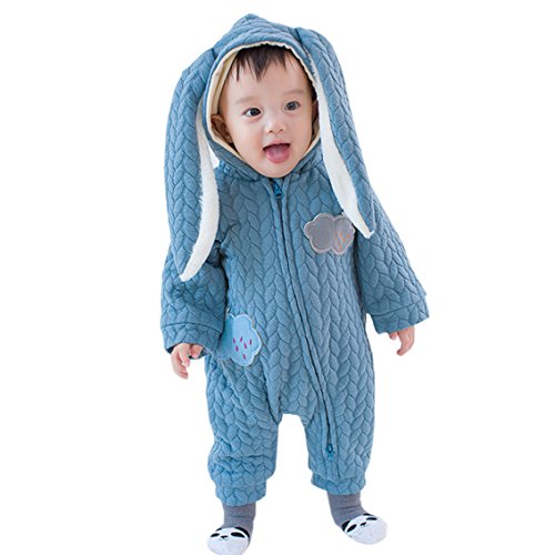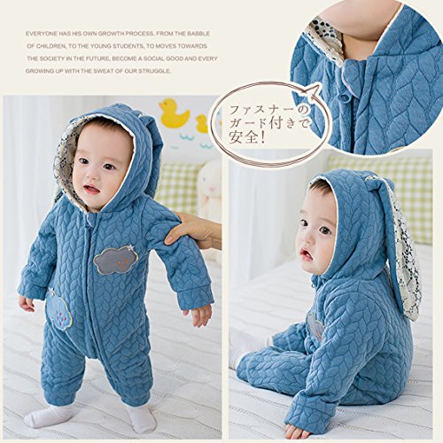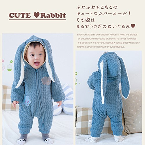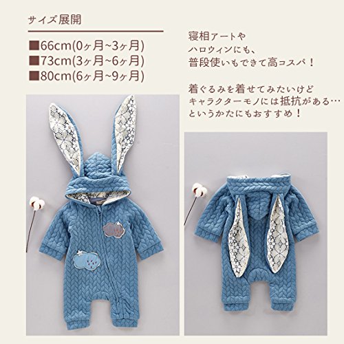 nijuh うさぎ うさ耳 コスチューム カバーオール ベビー 防寒 着ぐるみ ジップアップ フード ふわふわ (66, ブルー)