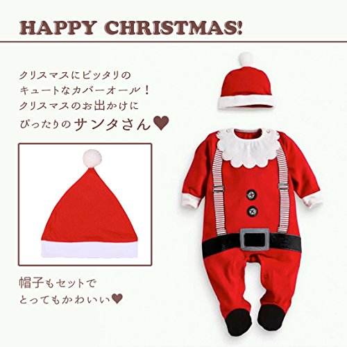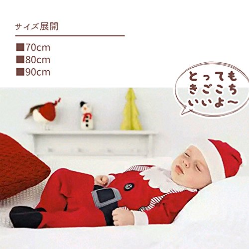 nijuh カバーオール サンタクロース サンタさん クリスマス ベビー 着ぐるみ 帽子 セット (80)