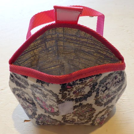 ラミネート加工されたオリジナルファブリックがかわいいマグポーチ。