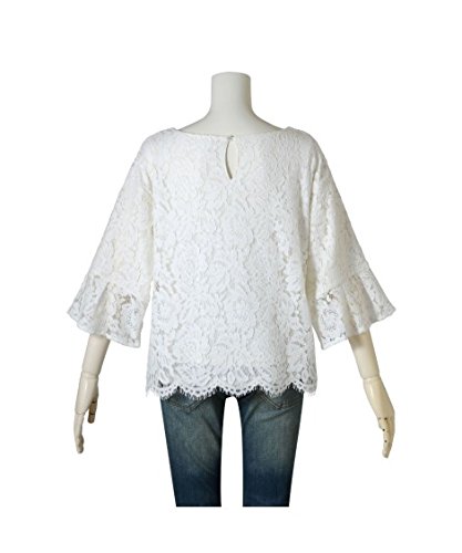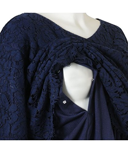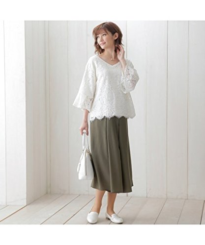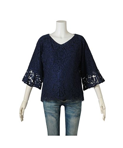 マタニティウェア・授乳服 【授乳服・産前・産後】フォーマルにも通勤にも使えるリバーレースフレア袖マタニティブラウス ニッセン nissen 紺 M・マタニティM
