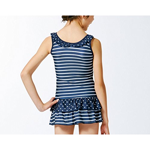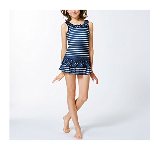 (ニッセン) nissen キッズ ジュニア 女の子 水着 2点セット ( タンクトップ + パンツ付 スカート ) 紺系 身長 140cm