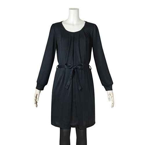 (ニッセン) nissen 【 マタニティ 授乳服 産前 産後 】 共布リボン付 ニット風 タックワンピース 授乳機能付き 黒 産後LL