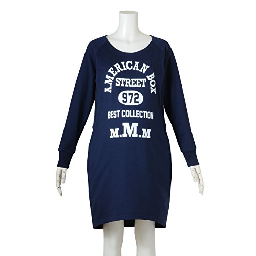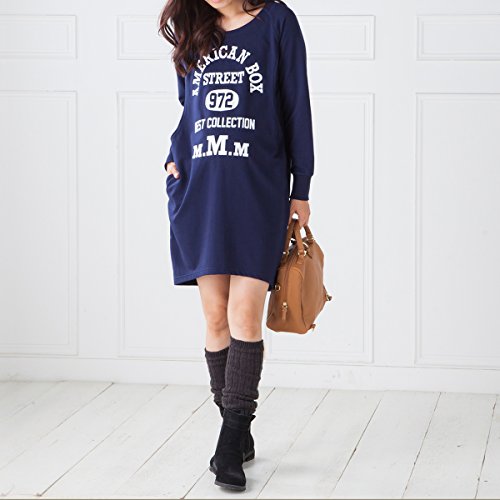 (ニッセン) nissen 【 マタニティ 授乳服 産前 産後 】 カレッジプリント スウェット地 ラグラン ワンピース 授乳機能付き 紺 マタニティL