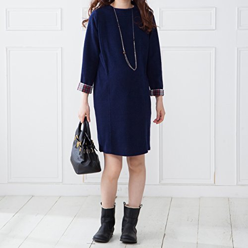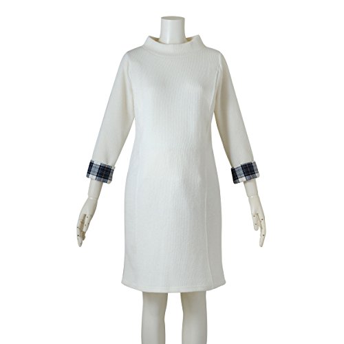(ニッセン) nissen 【 マタニティ 授乳服 産前 産後 】 チェック袖使い リブニット風 コクーン ワンピース 授乳機能付き オフホワイト マタニティL