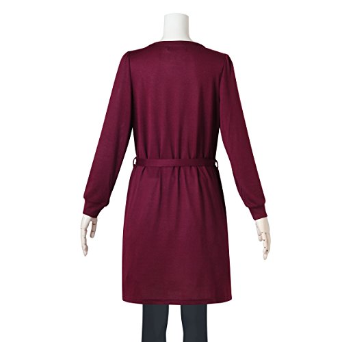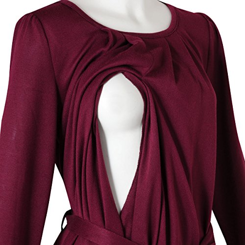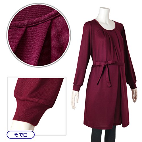 (ニッセン) nissen 【 マタニティ 授乳服 産前 産後 】 共布リボン付 ニット風 タックワンピース 授乳機能付き ボルドー 産後L