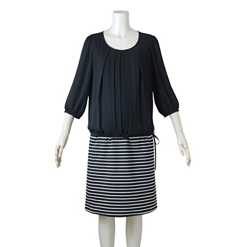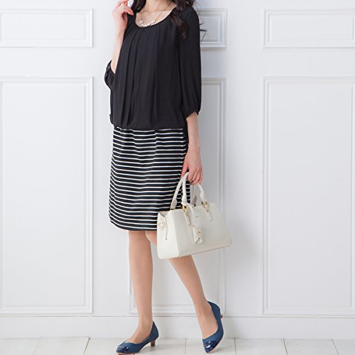 (ニッセン) nissen 【 マタニティ 授乳服 産前 産後 】 ニッセン × 犬印本舗 共同企画 通勤に使える きれいめ ワンピース 授乳機能付き 黒×ボーダー柄 マタニティM