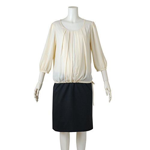 (ニッセン) nissen 【 マタニティ 授乳服 産前 産後 】 ニッセン × 犬印本舗 共同企画 通勤に使える きれいめ ワンピース 授乳機能付き アイボリー×黒 マタニティ3L