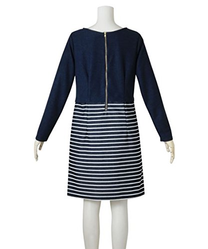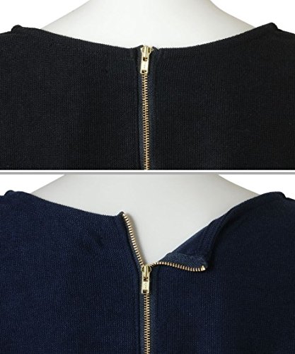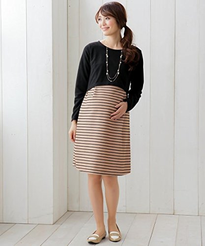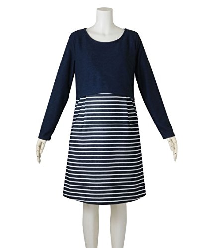 マタニティウェア・授乳服 【授乳服・産前・産後】変わり編みポンチボーダー切替マタニティワンピース ニッセン nissen 紺 M・マタニティM