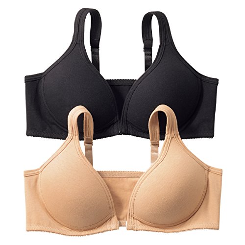 (ニッセン) nissen 綿混 ノンワイヤー フロントホック モールド ハーフトップ 2枚組 無地(ベージュ+黒) M