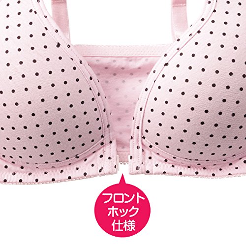 綿混ストレッチ生地を使用したノンワイヤーブラ。フロントホック仕様で着脱もラク。下厚モールドで自然なバストラインをメイクします。