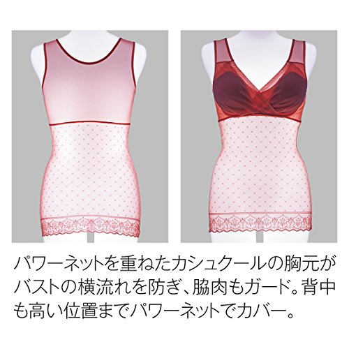 パワーネットを重ねたカシュクールの胸元が、バストの横流れを防ぎ、脇肉・背中をカバー。取り外しOKの下厚パッド付きでバストアップ。やわらかなパワーネット生地で裾もくいこまず、からだに沿う柄ヘム仕様です。